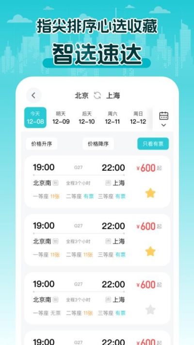智能排序+收藏星标,心仪班次绝不漏网 。