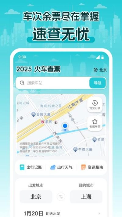 车站导航规划:接入地图导航功能,可实时规划前往车站的最优路线,提供完整导航指引,出行更顺畅;