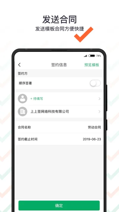 1、无纸化高效办公:无需纸张和打印机,随时随地完成合同签署,提升办事效率。