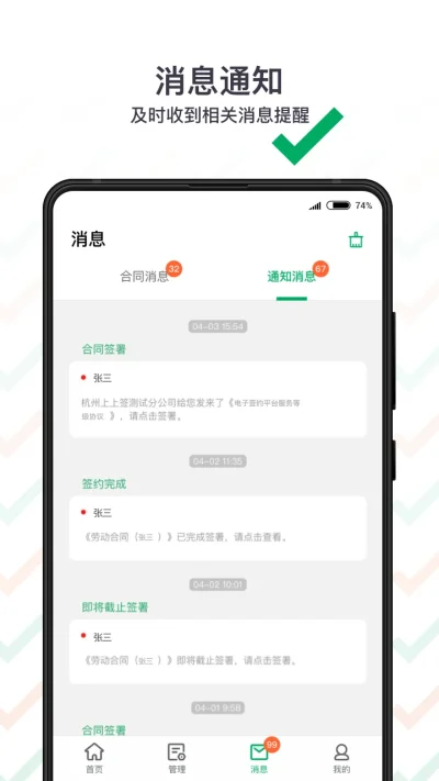 5、实时消息提醒:配备声音提示功能,确保用户第一时间接收合同更新通知。