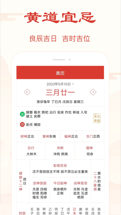日历:黄历宜忌、节日节气、吉日查询、历史查询;