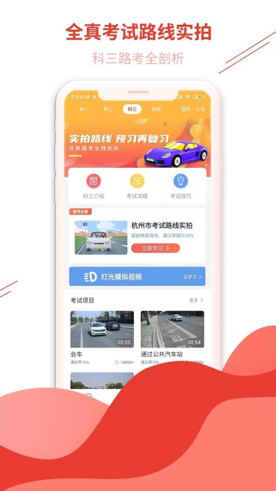 提供小车、摩托车等全车型考试题库,覆盖完整学车流程,从报名到考试,一路顺利拿证,堪称保姆式驾考服务体验。邀请驾驶员培训专家深度剖析交规讲解驾照考试技巧,通过科学有效学习方法,助力学员快速通过驾照理论考试,顺利拿驾照。