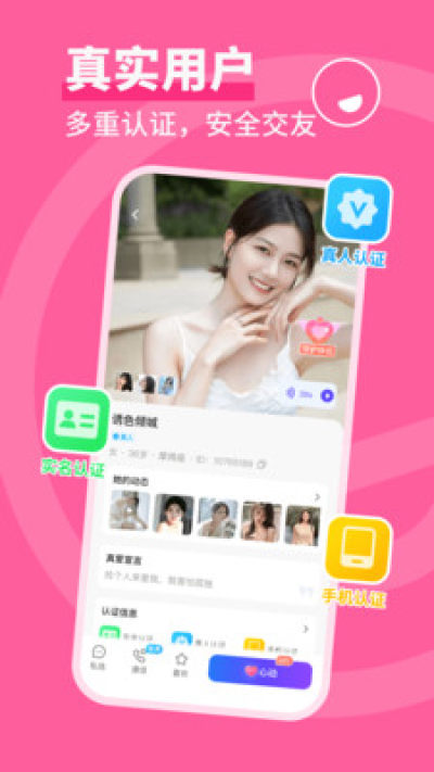 【真实用户】真人认证、手机认证、实名认证,多重安全认证,交友安全可靠。