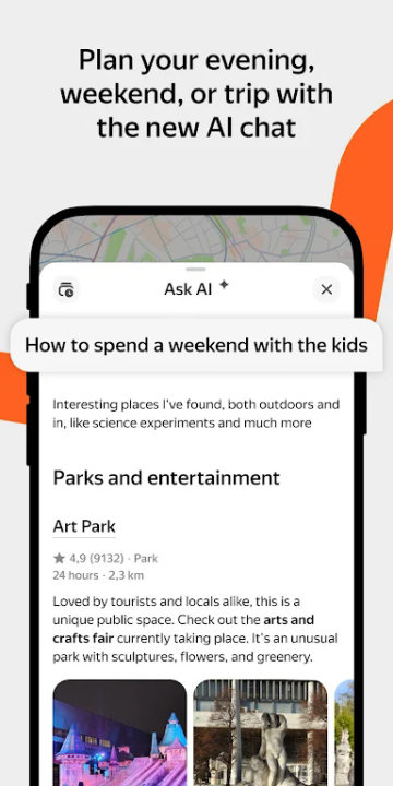 Yandex Maps 是您周围城市导航的终极应用程序。 Yandex 地图包含许多有用的功能,可以帮助您舒适轻松地出行。有导航器,提供有关交通拥堵和摄像头的信息,还有语音助手爱丽丝。可以按地址、名称或类别搜索地点。公交车、无轨电车和有轨电车等公共交通在地图上实时移动。选择任何交通方式到达目的地。或者如果您愿意的话,可以创建一条步行路线。