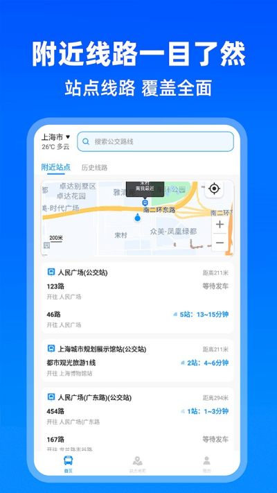 实时公交出行官方版是一款公交车事实位置追踪软件,软件通过GPS定位系统,实时追踪公交车辆的位置并在地图上显示,让用户清晰了解公交车的行驶方向和当前位置,准确预测公交车的到站时间,提供多种出行方式的智能规划,自动推荐最优的公交线路和换乘方案!