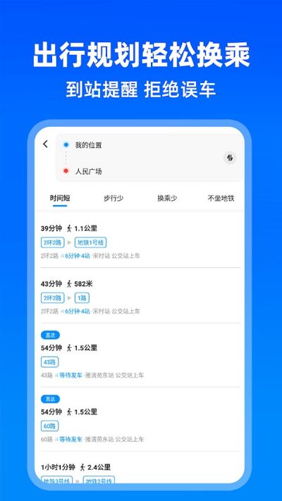 5、多维度换乘规划:结合公交动态、首末班信息和路径距离,给出精准换乘方案。