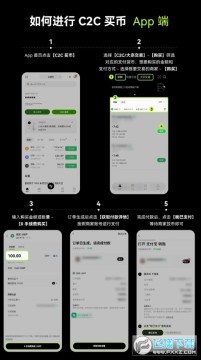 1、打开 App 首页,点击【C2C 买币】,选择【C2C】-【购买】-选择合适的商家点击【购买】;