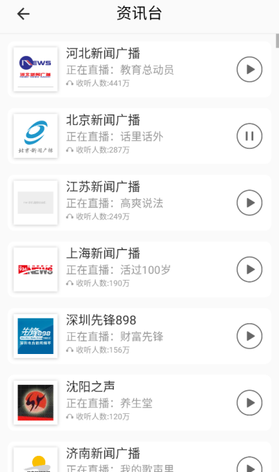 资源FM手机调频收音机官方版的功能挺强大的,能搜索到很多电台,而且操作简单,就是希望能增加一些个性化的设置。