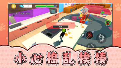 1、完成各类宠物任务,如在客厅进行捣乱互动、尝试走出院子等。
