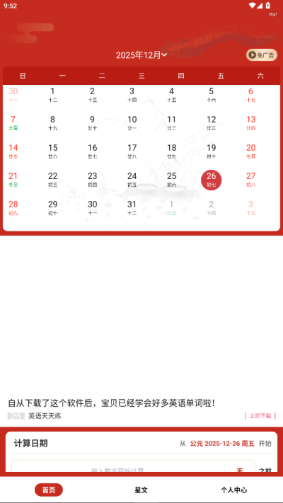 3、个人中心,另外提供生日解读、二十四节气、时长计算等功能,帮助大家解读一些生活紧密相关的事项。