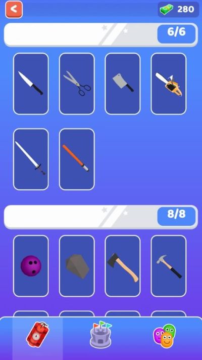 从日常工具到科幻兵器应有尽有——水果刀、菜刀、剪刀、剑、电锯,甚至火箭筒、手雷、自动步枪,乃至核弹!每种武器都带来独特的打击感与战术选择。