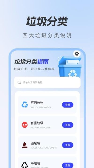 打开App,即可立即进入垃圾分类界面,开始你的环保之旅。