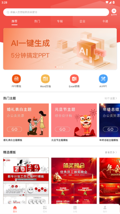 该应用整合AI生成、模板库与互动学习功能,覆盖从商务报告到创意展示的全场景需求。核心优势在于智能推荐、分类模板及社区交流,帮助用户提升PPT制作效率与质量。