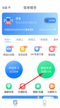 2、进入首页后点击“模拟考试”选项;