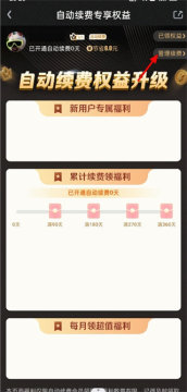 2、进入自动续费专享权益页面点击管理功能。