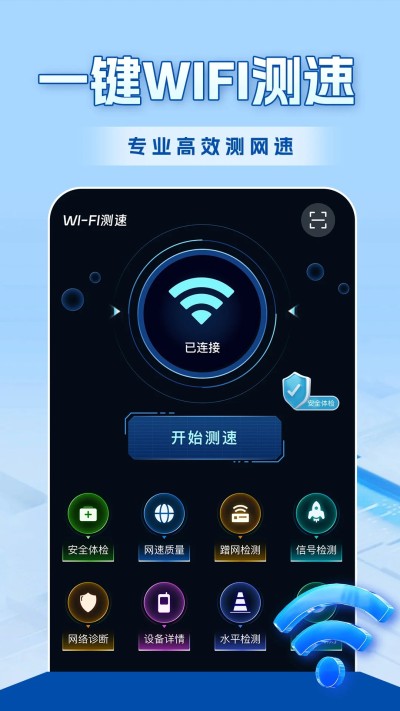WiFi全连钥匙是一款能够测试当前网络安全性、速度的应用,还具有许多实用的小功能。