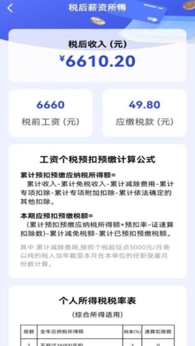 税后收入:支持计算并查看用户的税后收入,包括预缴税款的计算。