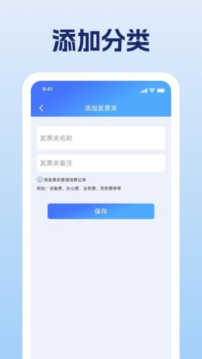 添加分类:提供选项对发票进行分类管理,可以根据日期或类型整理发票。