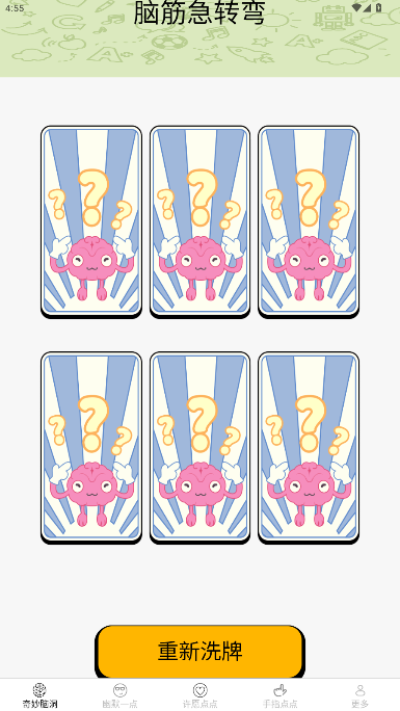 1、海量脑筋急转弯:提供丰富题库,随机转盘抽取题目,挑战思维敏捷度。