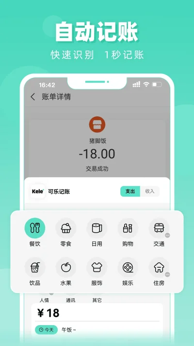 1、智能自动记账:自动识别支付宝、微信等支付的消费分类、金额及备注,解放双手。