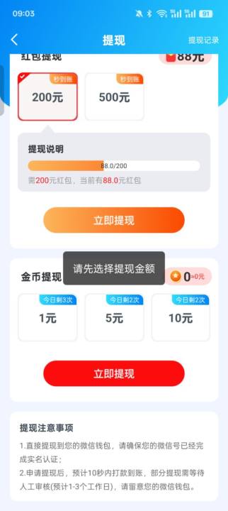 2、支持用户将自己获得的金币奖励进行提现,让你玩游戏也能赚钱。