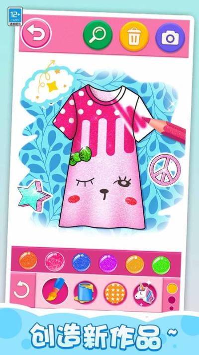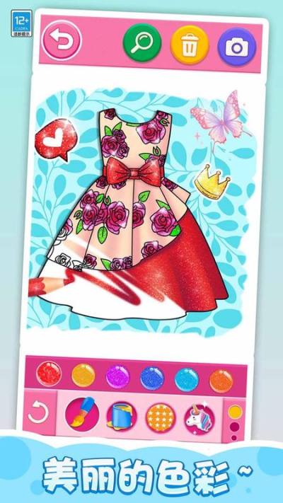 1、简单有趣的涂色玩法,让你轻松就能绘制出一条闪耀的公主裙,成为小小画家!