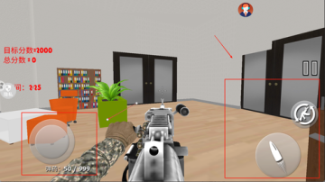 2、左边是移动摇杆,右边是开火及换弹,左下角显示的是当前武器的剩余弹药数量。