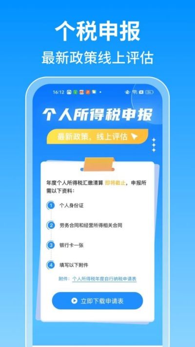 个税申报:支持在线个税申报,并能便捷下载纳税申请表。