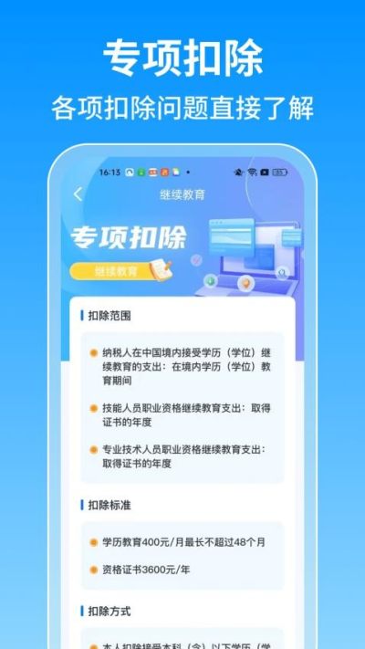 专项扣除:在线展示专项扣除的信息,让用户清晰了解可享受的扣除范围。