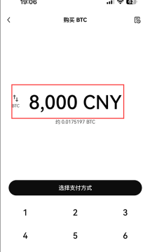 第二步:要购买的币种为BTC,输入需要购买的金额。点击如图所示的按钮即可切换成按币种数量购买。