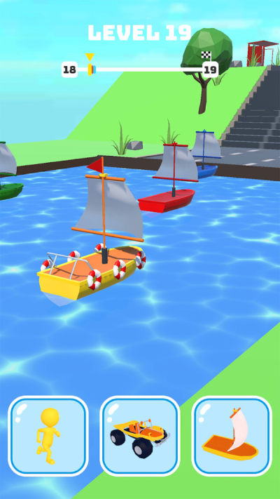 变形竞速赛手游是一款安卓休闲闯关冒险游戏,游戏中有着海量的关卡内容等你开启挑战,玩家可以选择不同的工具躲避障碍物,快速变形通关体验,成功通关即可领取奖励!对游戏感兴趣的话不妨点击下载试试!