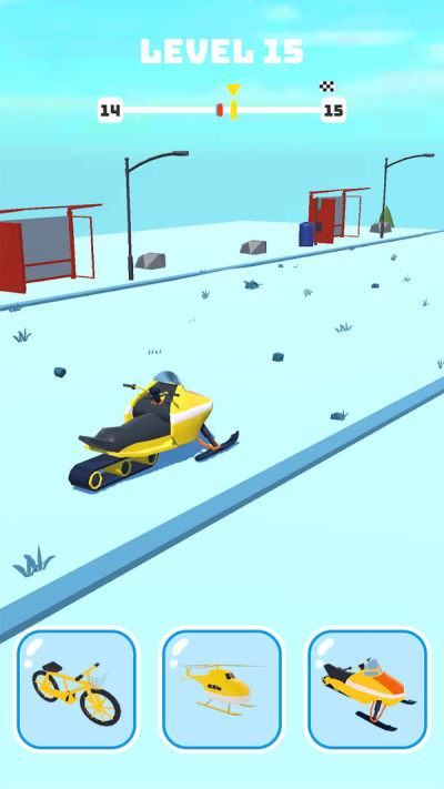 通过转换角色的形状,来适应不同的环境与场景。你需要借助各种交通工具迅速适应所有的环境,及时改变形状,在与敌人的对抗中赢取胜利。每个关卡都至少包含了3种不同类型的赛道,随着等级的提升,你将遇到各种不同类型的赛道。