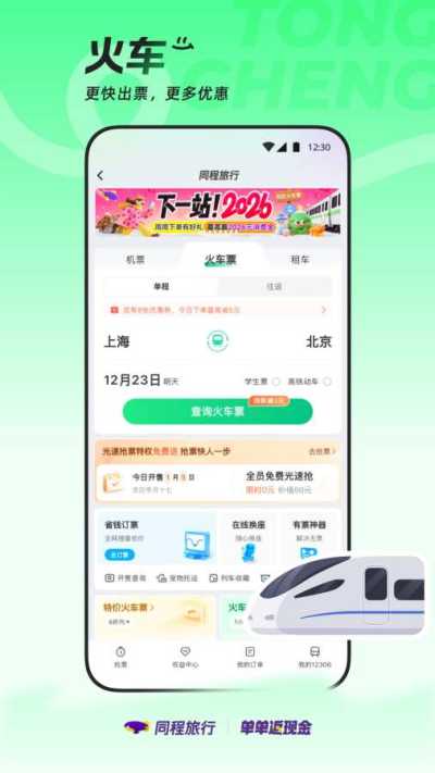 同程旅行app官方下载安装最新版是一款一站式旅行出行规划软件,整合机票、火车票、汽车票、船票及酒店预订服务,提供便捷实惠的出行解决方案,并专设学生优惠通道,助力轻松规划旅程。