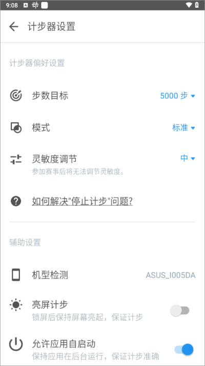 进入【计步器设置】→ 调整“灵敏度”或选择“内置计步器”模式。