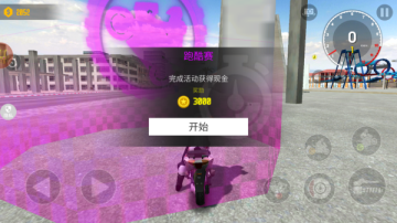 2、左侧控制摩托车方向,右侧控制油门倒车以及各种特技动作,在城市中自由驾驶收集金币。