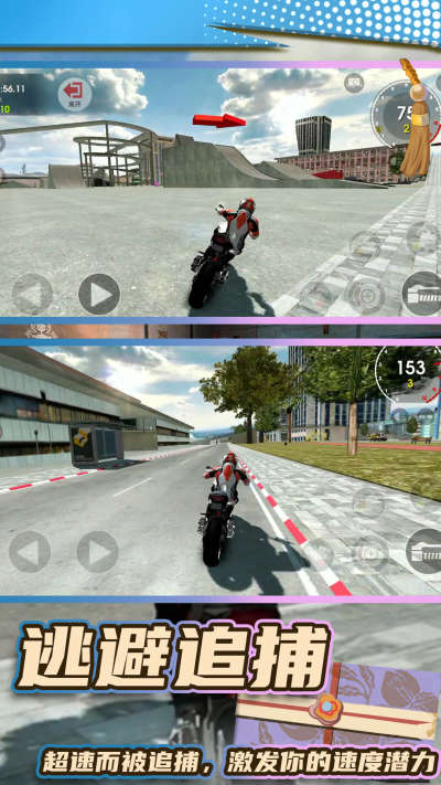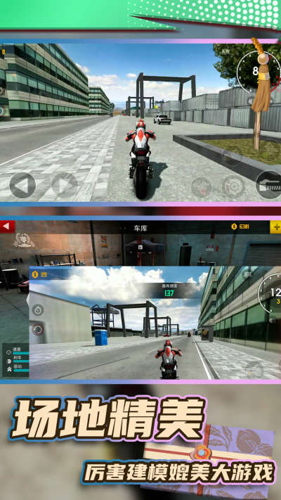 打破传统赛道限制!在霓虹闪烁的商业区、工业废墟、滨海公路、老城巷道等多区域无缝开放地图中自由探索,随心所欲开启一场无拘无束的摩托冒险。