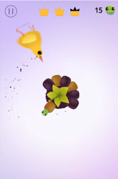 15、十五关到十八关就是吃奇异果,需要掌握节奏,而且会越转越快,一定要把握节奏快速啄下去。