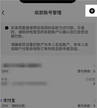 点击右上角“+”—【选择货币】、【收款方式】—可选择银行卡/支付宝/微信支付三种方式,按要求填写相关信息和提示即可完成绑定。