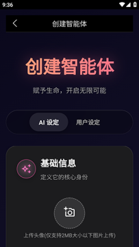 1、点击下方功能栏中间位置的加号,进入创建智能体界面。