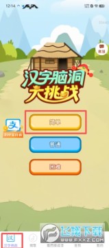 1、 打开软件进入“汉字挑战”页面,选择难度