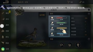 3、玩家可以通过捕食其他恐龙或者数目,来获得经验和进化值来提升自己的恐龙基因。