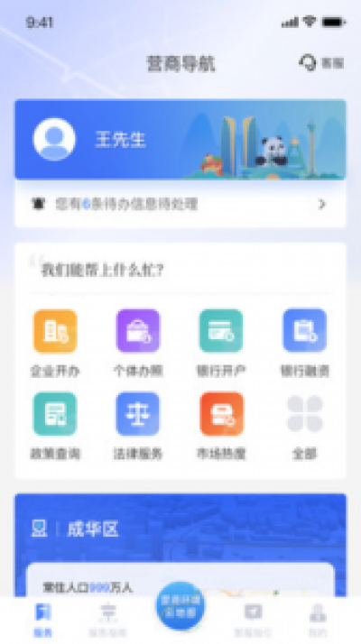 营商环境云地图营商通app是一款面向企业用户打造的商务便民服务平台,广大用户可以在这里快速进行注册使用,一键即可快速开办营业执照等规范证件,还可以查看官方发布的最新行业政策,对软件感兴趣的话不妨点击下载试试!