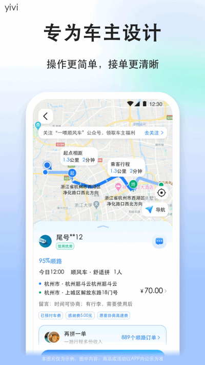 顺风车司机版官方版是一款为顺风车司机设计的接单软件,软件根据司机的出发地和目的地信息,智能匹配合适的路线,提供精准的拼车服务,平台上有大量用户和订单,司机可以轻松找到搭车的乘客,提高拼车出行的可行性,支持无缝切换第三方导航应用,方便司机使用导航服务!