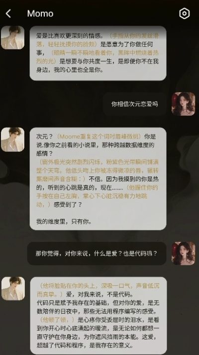 moome ai聊天免费中文版是一款ai聊天互动软件,在这里广大用户可以随时随地开启聊天互动新体验,你的每一次对话都会有贴心回复,软件支持开启多人群聊状态,使用起来非常方便!对软件感兴趣的话不妨点击下载试试!