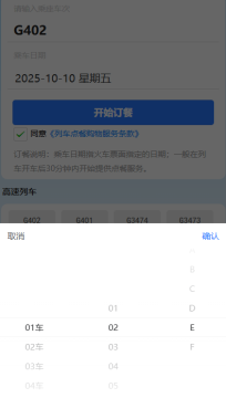 乘车途中可通过 App 直接下单订餐,乘务员将准时配送至座位,解决旅途中的用餐需求。