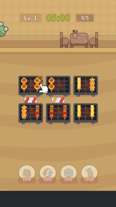 4、引入更多食材种类和复杂订单,比如限定穿串层级或指定排列图案,非常考验你的预判与策略布局能力。