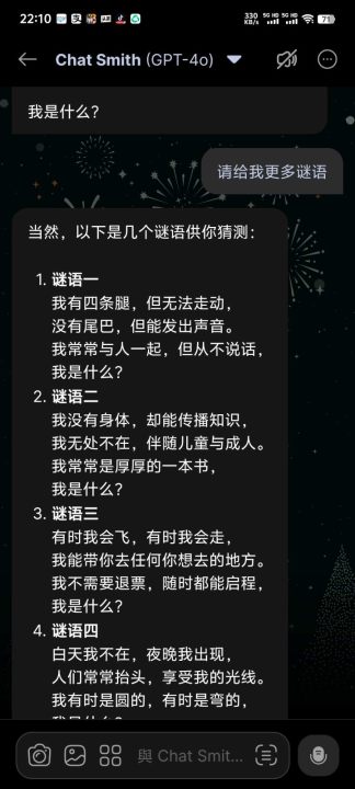 ChatSmith解锁高级版安卓版是一款基于先进人工智能技术开发的智能聊天工具,旨在通过灵活理解用户输入的自然语言(文字或语音),准确识别用户意图,解析问题并提供精准回复,为用户带来高效、便捷的对话体验。