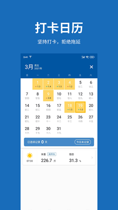 1、日历打卡,摆脱拖延。