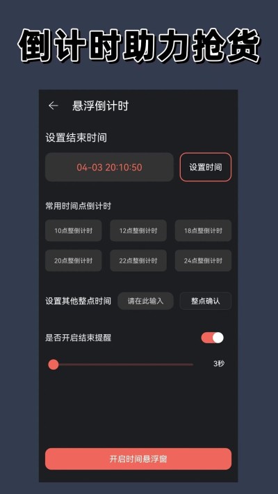 悬浮时间软件下载最新版是一款集高精度计时、悬浮显示、智能提醒于一体的轻量化时间管理工具。以「毫秒级精准度」为核心,支持全局悬浮窗显示、自定义界面样式、多场景提醒功能,完美适配抢购秒杀、日程管理、学习专注等需求。软件体积仅3MB,无广告零后台,打造纯净高效的时间管理体验。