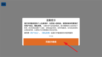 1、首先打开游戏,阅读并同意《用户协议》和《隐私政策》;